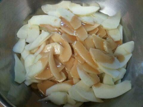 One of the recipes that I found while I was researching for this blog was named after someone’s grandma. Seems this grandma cooked up a syrup instead of mixing the apples with sugar, flour and cinnamon, and then poured it over the apples in the pie crust. So today I made a syrup with butter, flour, sugar, cinnamon and apple juice and tossed it with the sliced apples and then arranged them in the crust. Oh, and I also tossed in a cup or so of sliced almonds.