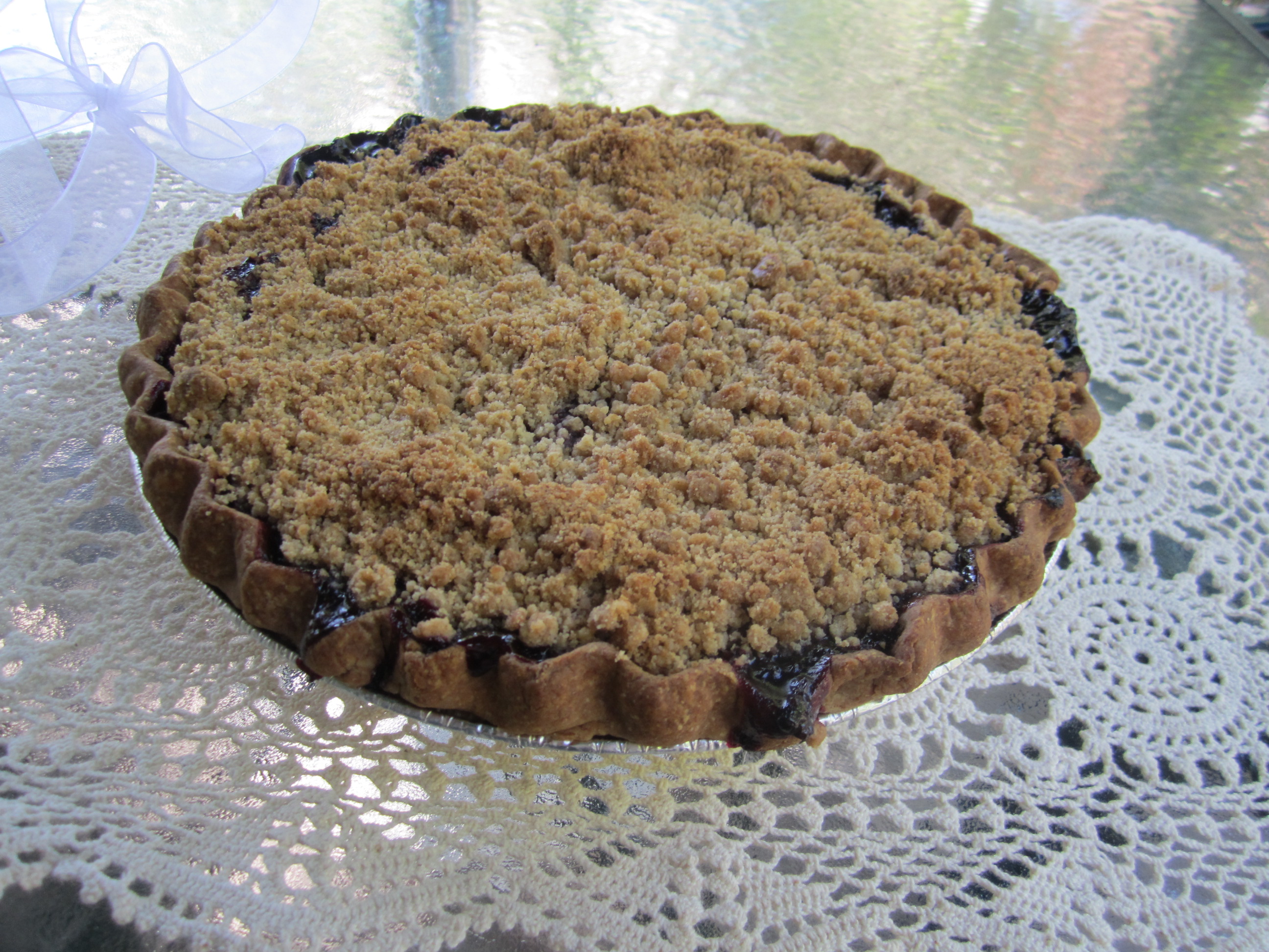 The pie took about an hour and fifteen minutes to bake but when it came out of the oven, it really looked delicious. The apples and the almonds were lightly browned and the crust was practically perfect! I was anxious to deliver this pie for I was very pleased with how it had turned out.