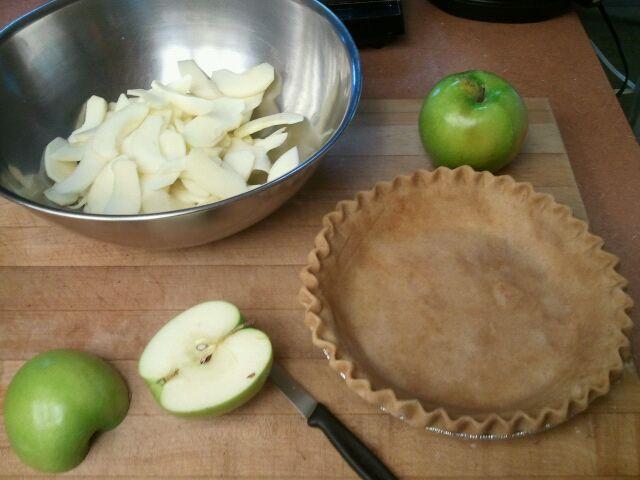 Today my friend Donna was returning after a busy month of traveling abroad and I thought that she might appreciate a fresh apple pie to welcome her home. I started out the day by rolling out my crust and then peeling the apples for the filling.