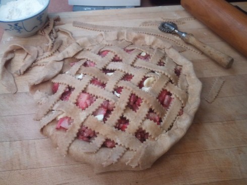 Betty’s daughter called me last week and when I asked how she was she said,”I’m sad” and I knew then that Betty was gone. It’s hard when you realize that you will never see someone again; that life is different now. I will miss Betty’s laugh, the way her eyes twinkled when she smiled, and of course, the bowls of M&M’s that she always had on hand. This morning I brought Betty’s family a Strawberry Rhubarb Pie. It’s a small gesture to help ease this time of sadness and express my thanks for including us in their extended family. I am truly grateful for having met them.