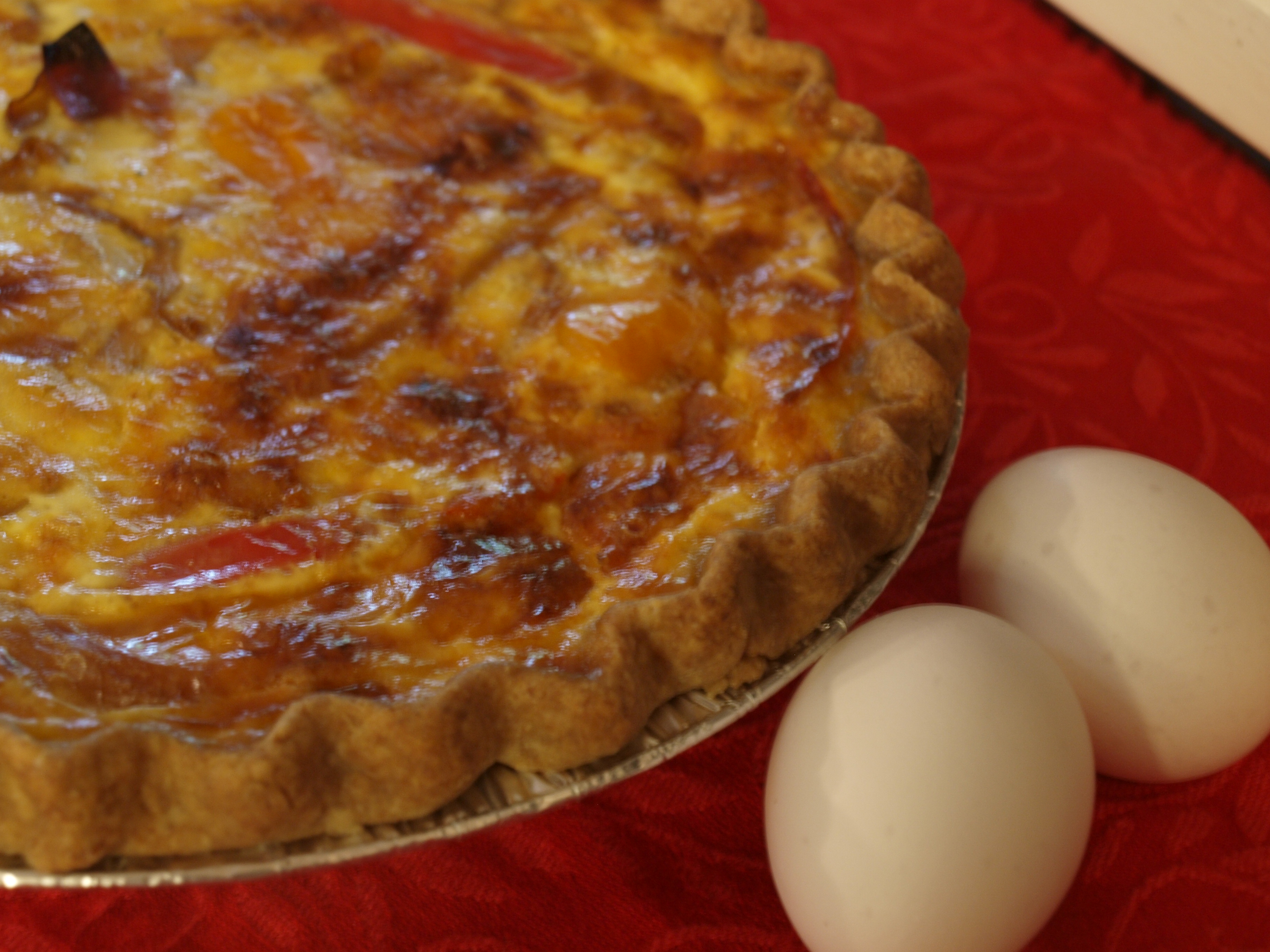 Today I baked a sausage and roasted pepper quiche for Kathy. I thought that a woman as busy as she is might appreciate having dinner made for her. When I arrived at her office, I found out that she had already left for the day. Fortunately, Kathy does not live far from campus and so I delivered the quiche to her home.