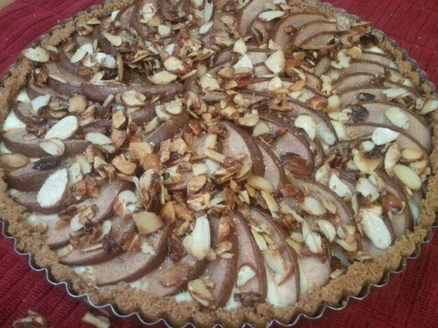 Cream Cheese Pear Tart topped with Toasted Almonds