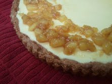 Today I wanted to try a new recipe and perused epicurious for a while and then I found a recipe that sounded really tasty: Sweet Ricotta Cheese Tart.  And of course I did not follow the recipe exactly.  Instead of making their crust, I made an almond shortbread cookie crust and pre-baked it before adding the filling.  I added a bit of amaretto to the filling instead of vanilla to complement the almonds in the crust.   When it was done baking, I decided that I wanted to add a fruit topping and so I sautéed some fresh, chopped pineapple in butter and brown sugar and placed it on the cooled pie.  I think it looked good enough to eat!