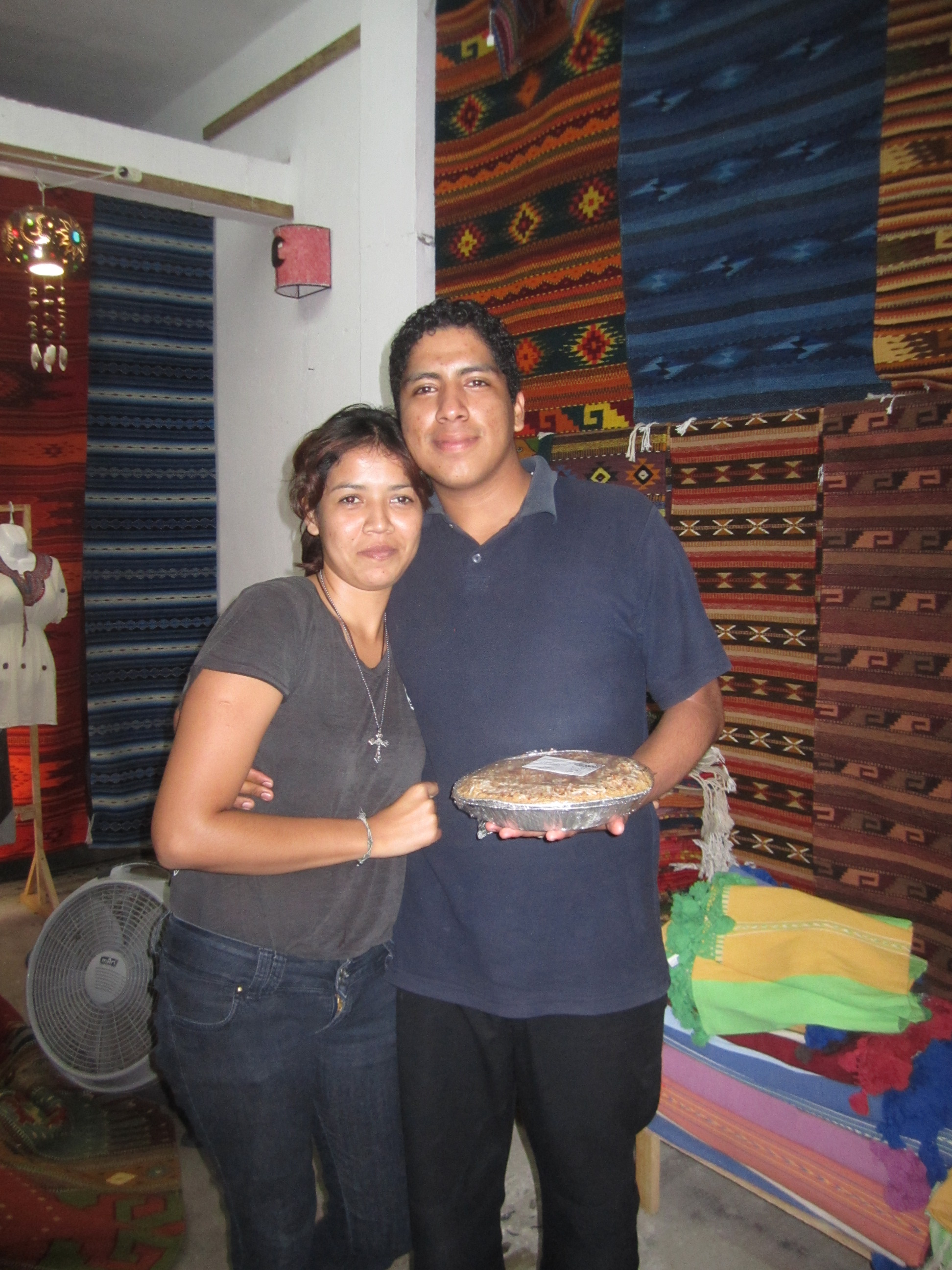 Maybe I felt a connection to that young man because I too learned my craft when I was young. Whatever the reason, last night Emile and I walked back to the shop and brought a pie to that young man. He was there with his girlfriend and as I gave him the pie I tried to explain in my best Spanish that the pie was a gift – to honor the beautiful pieces that he had created. I hope that he continues to pursue his art throughout his lifetime for I believe it can make all the difference in the world.