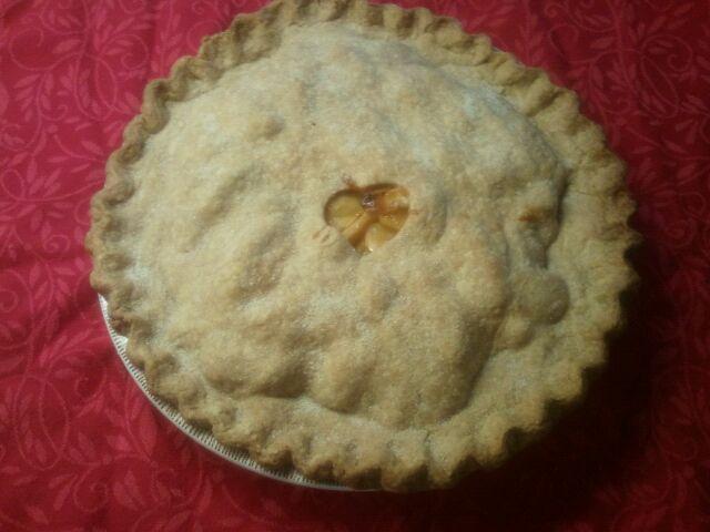 When the pie emerged from the oven an hour or so later, it looked pretty much the same… and it smelled delicious! When it was cool enough to pick up, I drove it over to Sue’s house, but unfortunately she was not at home. I left the pie in a safe space by her door and sent her a text letting her know that it was home waiting for her. Later, we talked and she told me that she shared the pie with herJefferson Public Radio co-workers and she was delighted to have the original recipe from Bajr.