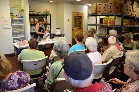On July 26, the Ashland Emergency Food Bank hosted a “Pie Social” to thank their many volunteers and supporters.  For one of the activities, Pam Marsh, the director of the food bank, asked if I would be willing to give a demonstration on making pie crust and I was delighted to do so.  My goal was to show what method works for me and also to encourage those in the audience to have fun while baking. Remember folks… it’s just a pie!  If you make a mistake, you’ll learn from it… and get better next time.  When Julia Child dropped the turkey she did not toss it… but rather, brushed it off and laughed about it. We all should be able to do the same!