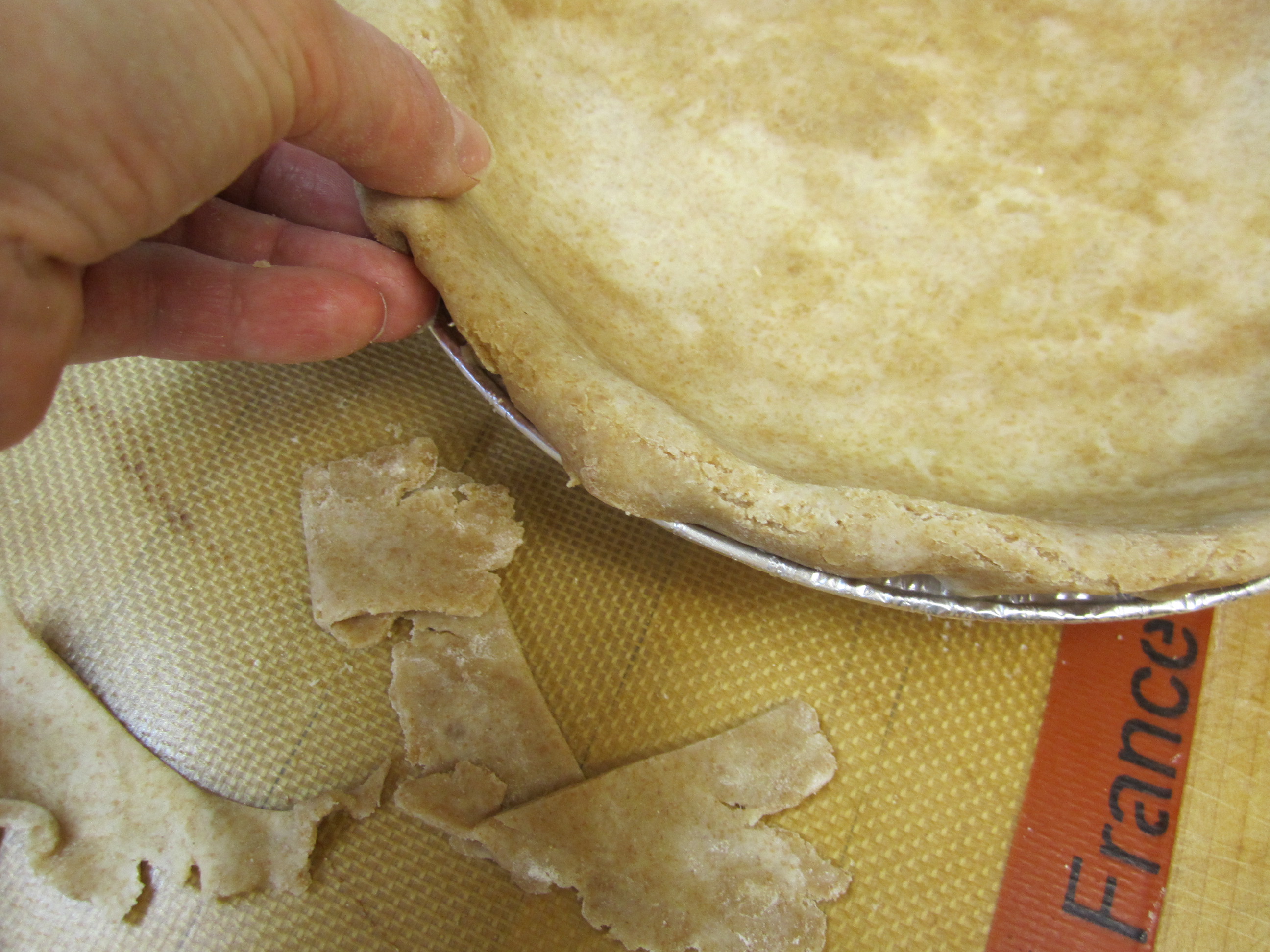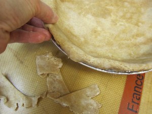 I decided to focus instead on the process of making the pie for in a way it is a kind of meditational “practice” for me.  First, I take my dough (I am making pie dough in batches so that I only need to make a batch once a week) and my silpat and my rolling pin.  Then I begin to roll out the dough. The dough is tender and so I handle it gently, and continue rolling it out until it is large enough for the pie pan.  Next, I trim the dough so that there is just enough of an edge to fold under. When the edge is folded, it is then time to make it look pretty.  It is easy for me to do this because over the years I have made hundreds ( perhaps thousands?) of pies. Think about the things that you do easily today.  Perhaps they weren’t always easy but because you wanted to know how to do them, they became easy because you practiced them over and over again.  That’s what it has been like for me with baking – I became good at it because I did it all the time.