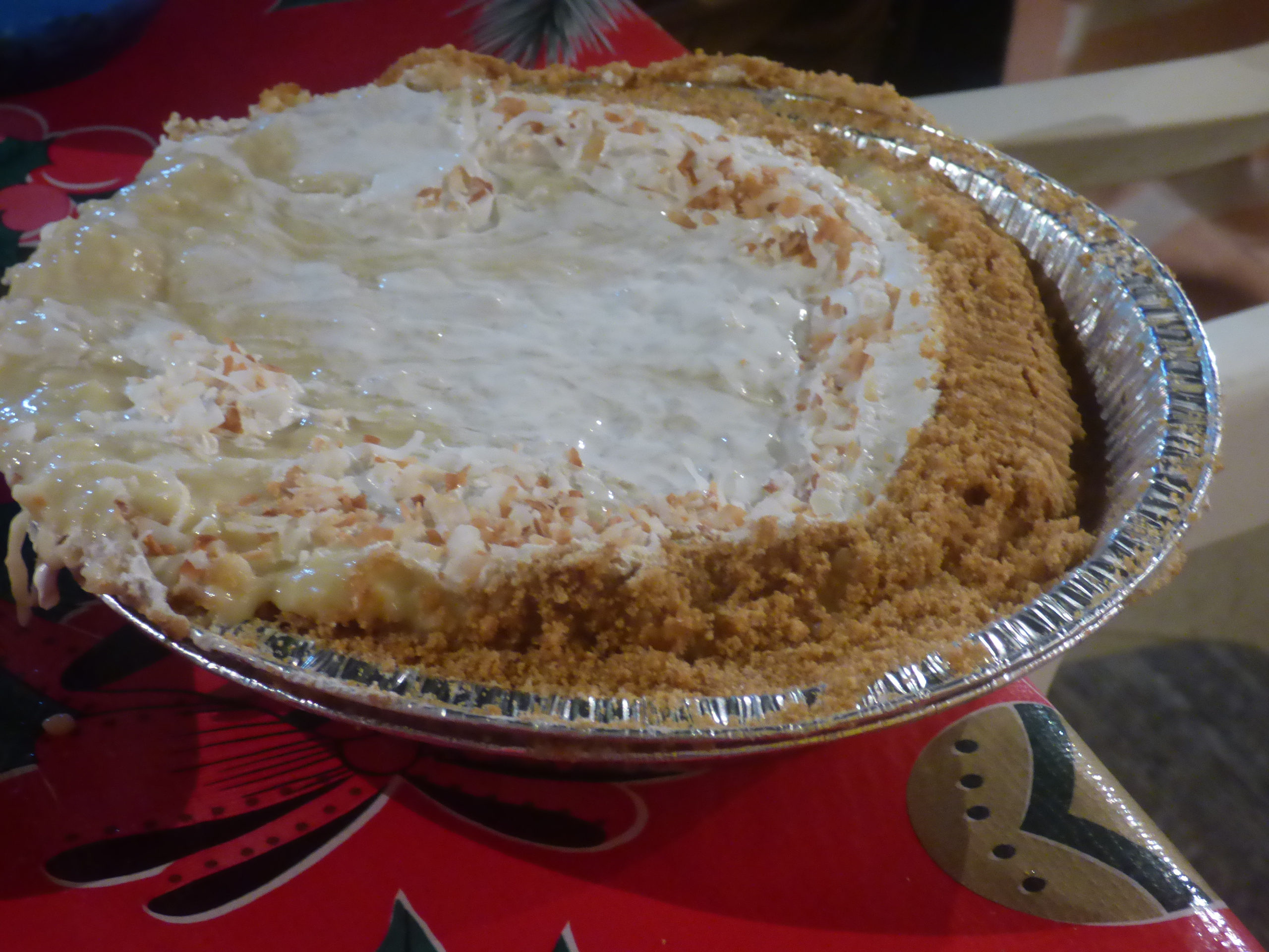 Blanca at the tienda gets her Chocolate, Coconut and Banana Cream Pie