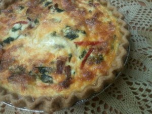 Once I got the play-dough in the mail, I was able to focus on today’s pie. The recipient had been on my mind but she was also recommended to me by Peggy, pie recipient #270. When I spoke to Peggy she thought that Wanda might like a quiche so that she could share it with her brother and his wife. That’s the kind of lady that Wanda is – always thinking about someone else.
