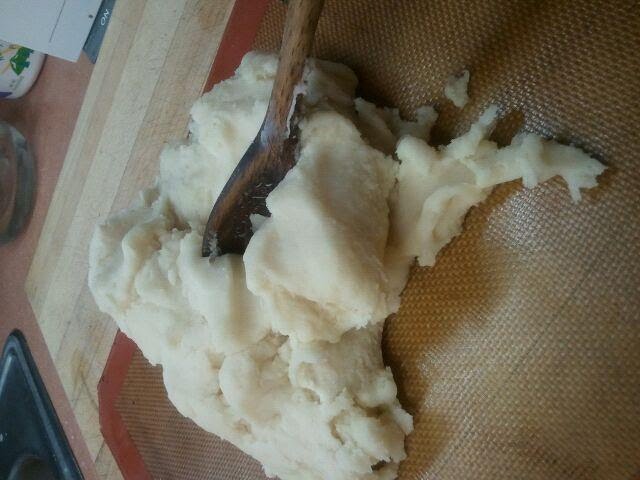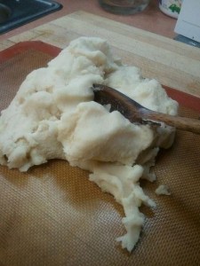 To begin, first I found a recipe for the cooked form of play-dough. Then I gathered the necessary ingredients and in just a few minutes I had a batch of dough that looked like this: